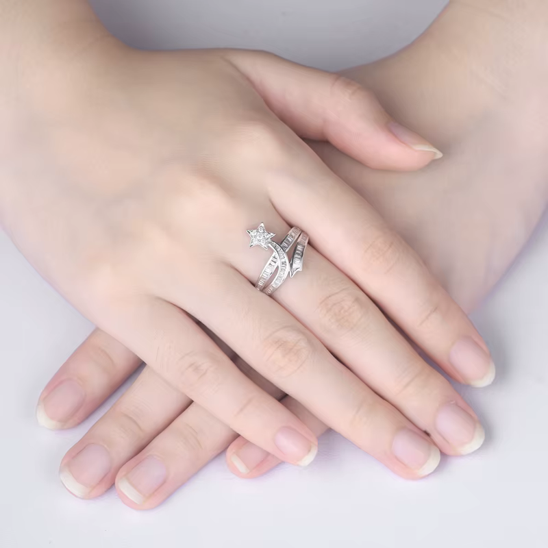 The wedding band in this Bridal Cubic zirconia wedding set is a similar design with the band of the engagement ring. They're such