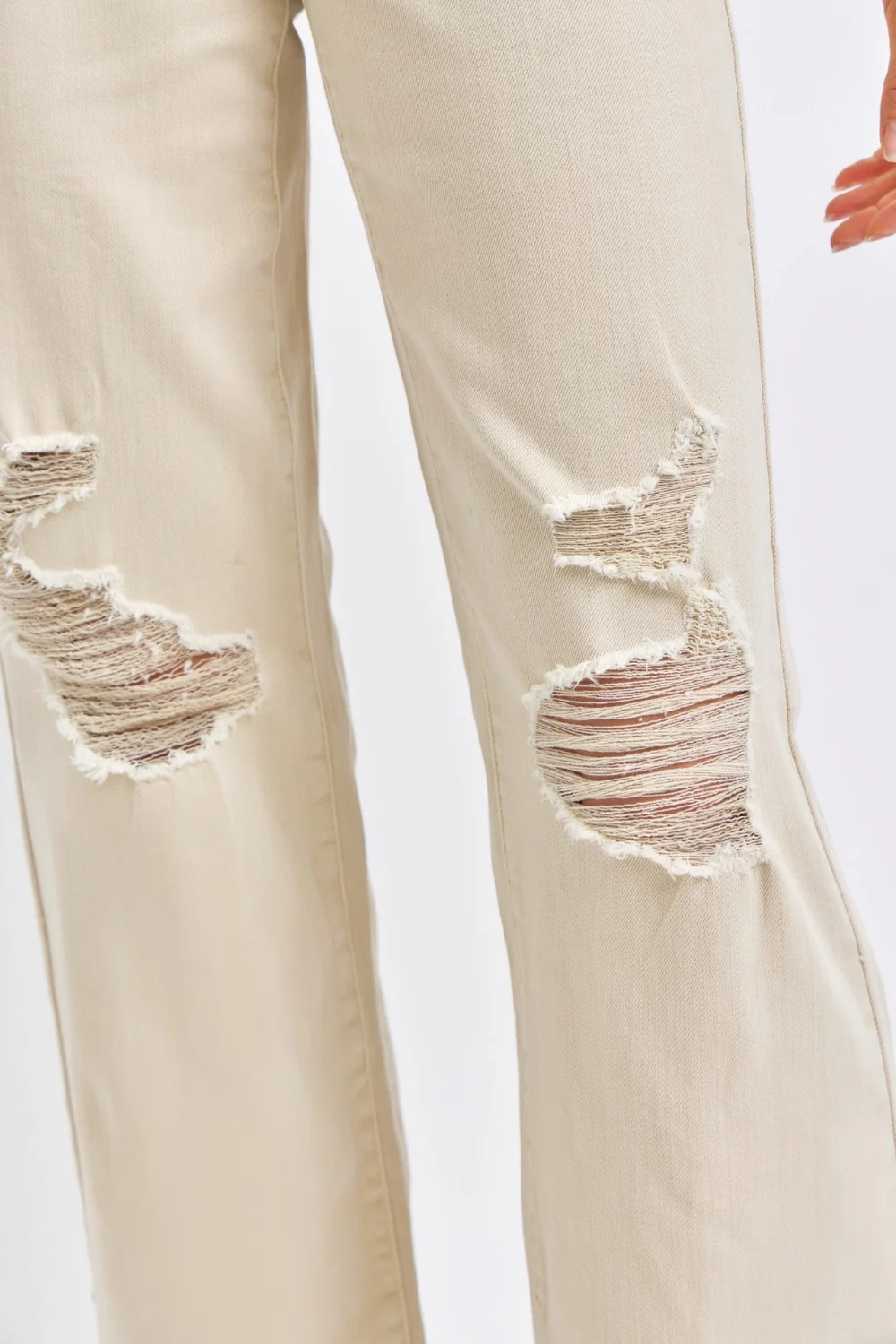 The High Waist Distressed Wide Leg Jeans are a modern and stylish denim essential that combines high-waisted comfort with on-trend distressed details. The wide leg silhouette offers a flattering and chic look that is both comfortable and versatile. Crafted from quality denim material, these jeans provide durability and a fashion-forward aesthetic. The high waist design accentuates the waistline and adds a touch of retro flair to any outfit. Pair them with a tucked-in top and heels for a sophisticated ensemble or go for a casual vibe with a cropped tee and sneakers. Embrace the effortlessly cool and fashionable appeal of the High Waist Distressed Wide Leg Jeans for a standout and versatile wardrobe staple.