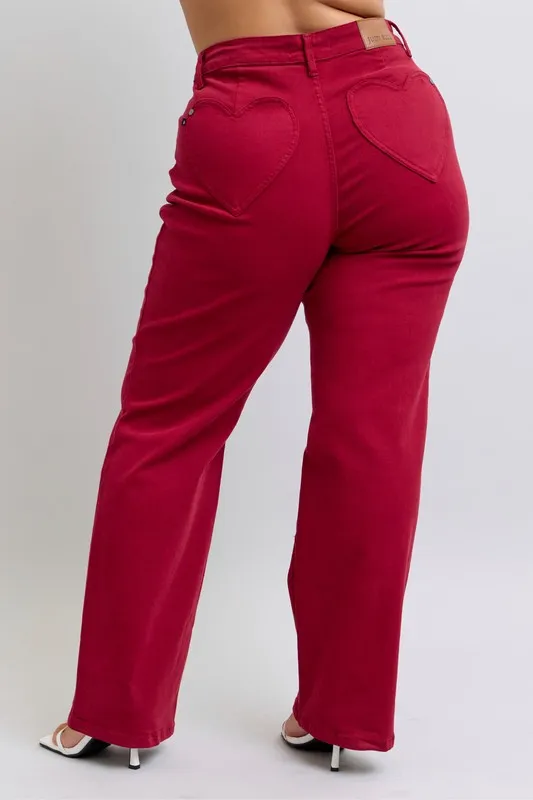 The High Waist Heart Shaped Back Pockets 90's Straight Jeans are a nostalgic and trendy addition to your denim collection. These jeans feature a high waist silhouette that is flattering and on-trend. The heart-shaped back pockets add a playful and feminine detail to the classic 90's straight leg style. Perfect for pairing with crop tops or tucked-in blouses, these jeans offer a versatile option for both casual and dressed-up looks. Bring a touch of retro charm to your wardrobe with these chic and stylish jeans that will have you feeling like you've stepped back in time with a modern twist.