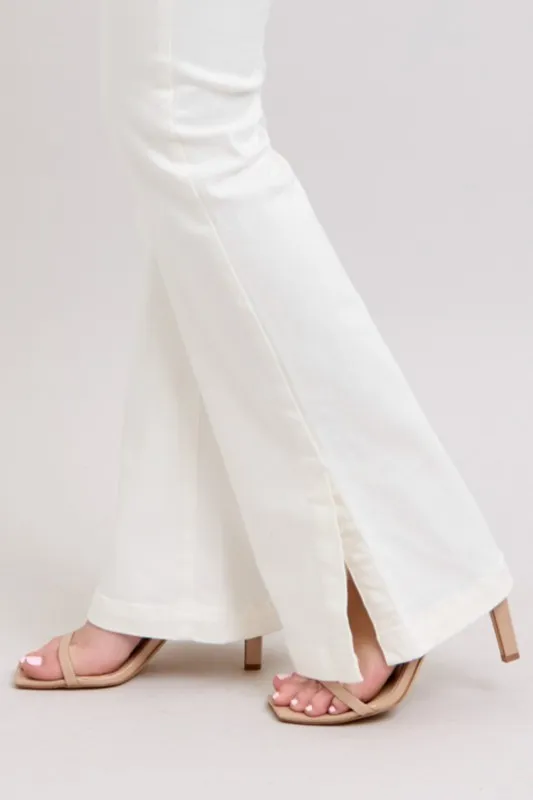 The High Waist Side Slit Slim Bootcut Jeans are a modern and stylish take on classic bootcut jeans. With a high waist design, these jeans provide a flattering and elongating effect on the legs while accentuating the waistline. The slim bootcut style offers a sleek and tailored silhouette that flares out slightly at the ankle, giving a balanced and chic look. The side slits add a contemporary and edgy detail to the jeans, offering a unique twist on traditional bootcut styles. These jeans are versatile and can be dressed up or down, pairing well with both casual and more dressed-up tops and shoes. They are a great choice for adding a trendy and fashionable touch to your denim collection.